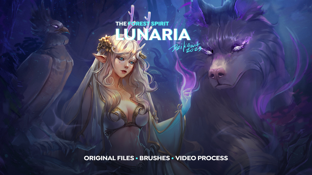 Lunaria the Forest Spirit Digital art package. Complete process + Brushes + Extras