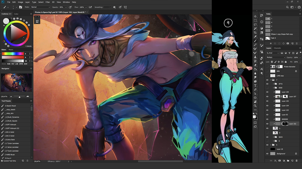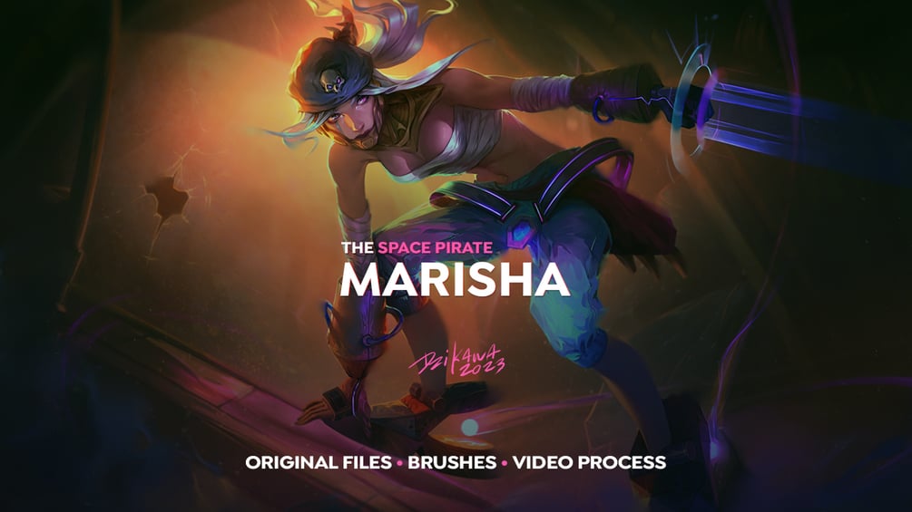 Marisha the Space Pirate Digital art package. Complete process + Brushes + Extras
